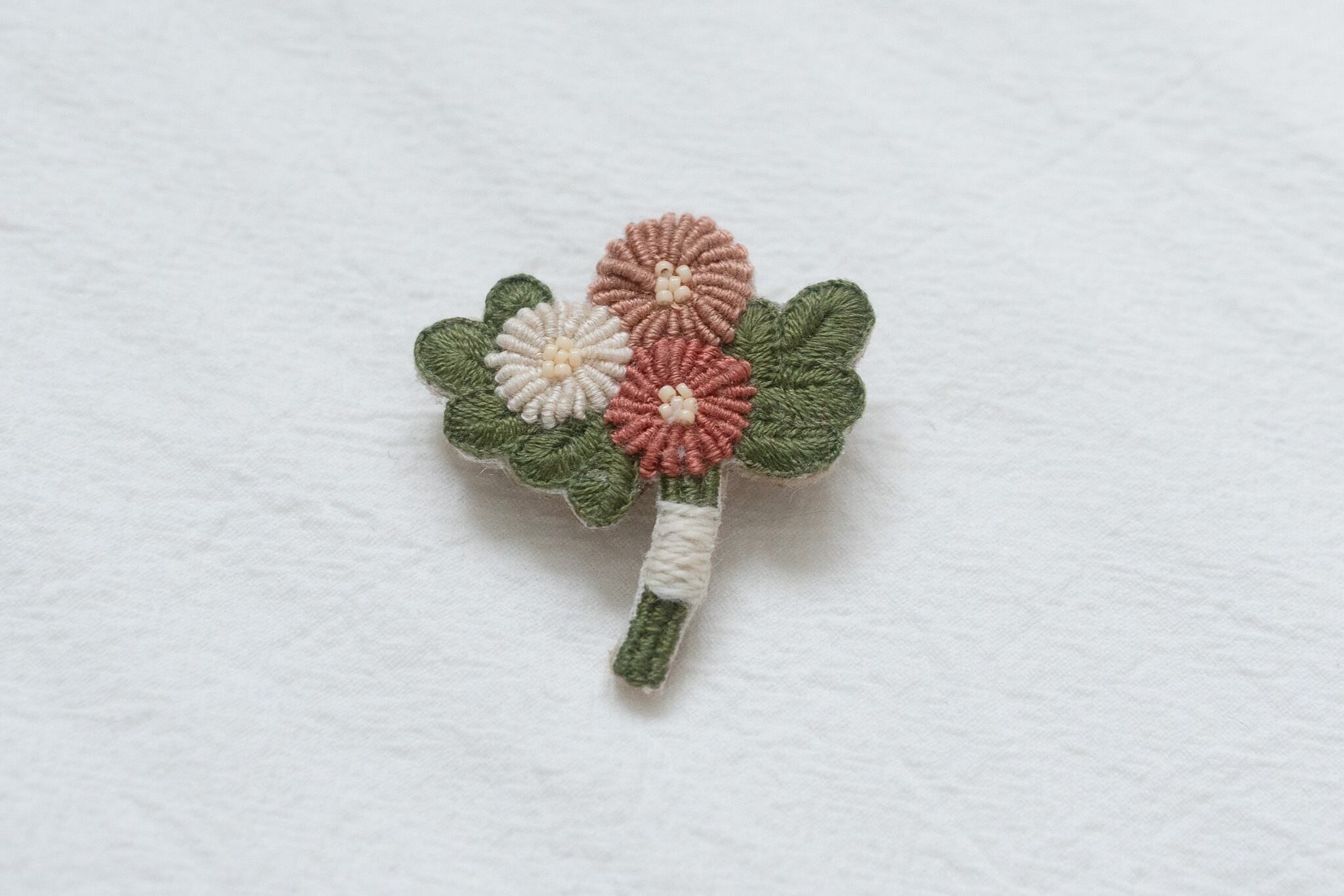 少しスモーキーでやさしい色合いのブーケを刺繍しました。